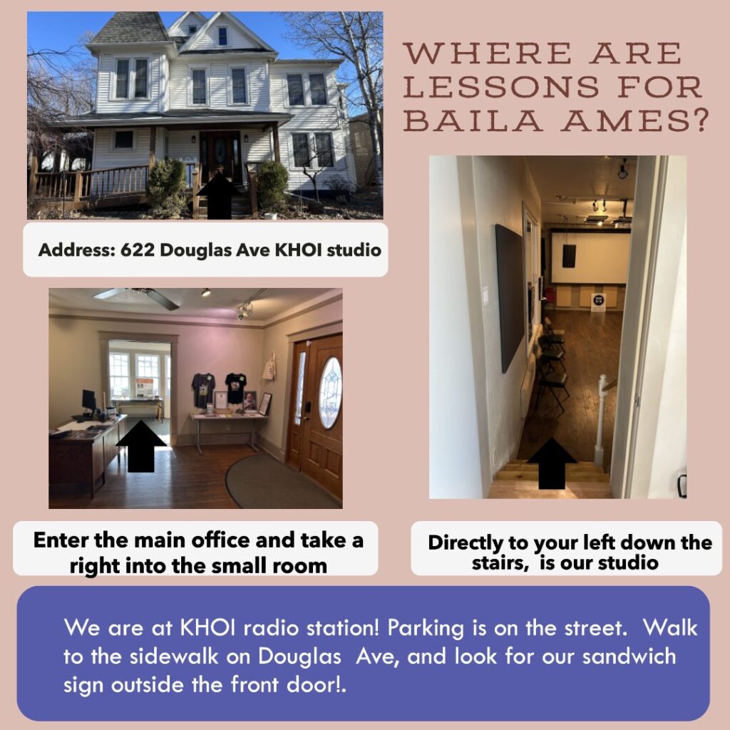Join us at our brand-new location at KHOI Radio Station 622 Douglas Ave Ames Iowa! Starting January 31st, 2026, we offer both group and private lessons in our spacious new studio. Join our group classes every Saturday with Salsa at noon and Bachata at 1 PM. Attend a single class for just $12 or enjoy both for $20! We also offer package deals and private lessons to fit your needs.