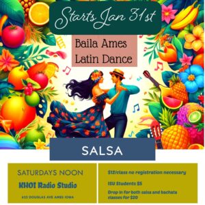 Join in our weekly salsa class at KHOI radio station! This is a more technique oriented class that is designed to make you able to dance with anyone across the country while making you shine on the dance floor!